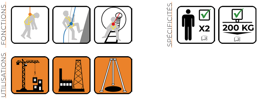Normes : EN 795B + CEN/TS 16415 + EN 1496B