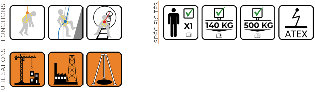 - Capacité de charge (utilisation avec EPI) : 140 kg