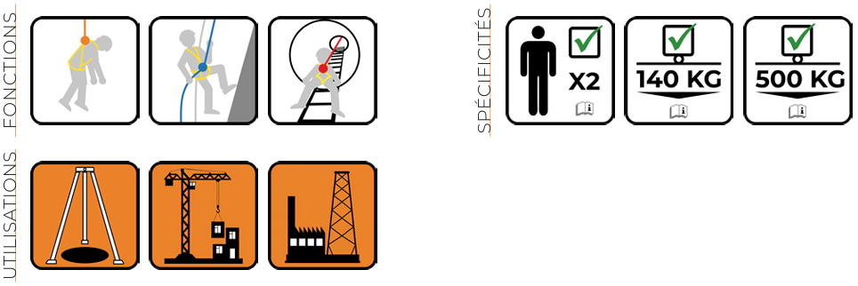 d’une personne (à utiliser en complément d’un dispositif antichute - max 140 kg) ou pour le levage de charge