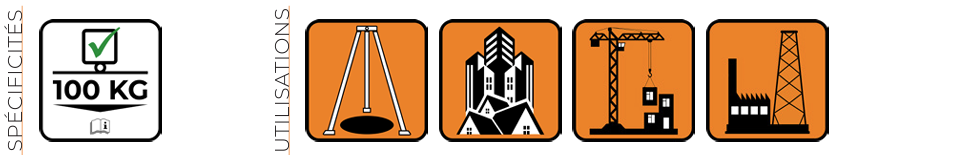 d’objet (levage jusqu’à 100 kg). Trépied télescopique de sécurité et de
